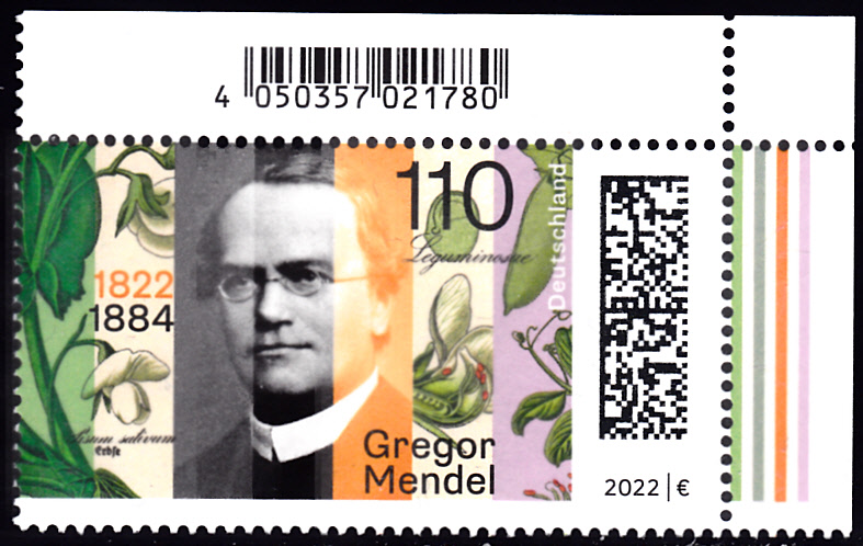 Zum 200. Geburtstag von Gregor Mendel ist bei der Deutschen Post eine Marke (MiNr 3699) erschienen. Sie zeigt ein Porträt von Gregor Mendel und Darstellungen zur Speiseerbse (Pisum sativum) nach Details einer Illustration aus dem Buch "Flora von Deutschland, Österreich und der Schweiz" (1885) von Prof. Dr. Otto Wilhelm Thomé.