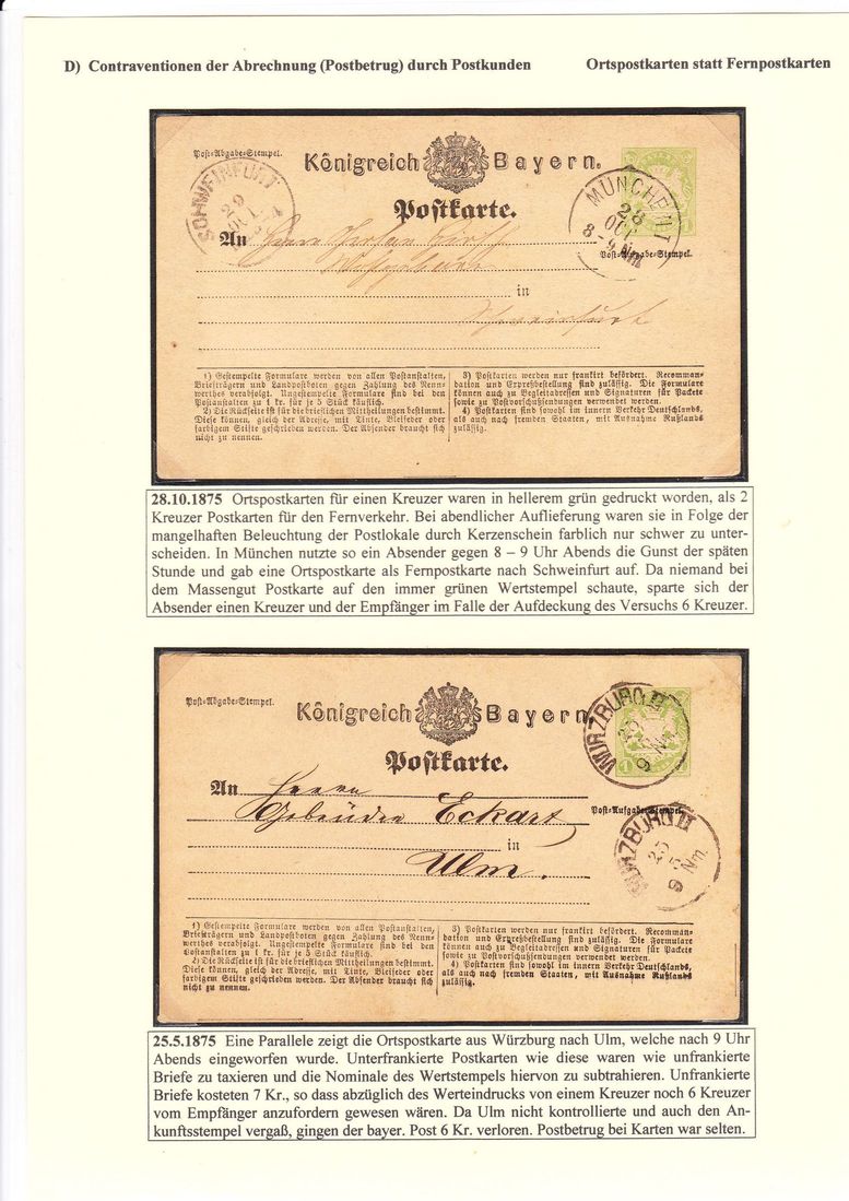 Ob man den konstruierten Postkundenbetrug nur an den Farben dieser bayerischen Ganzsachen festmachen kann, würde ich nur unter bestimmten Umständen für diskutabel halten.
