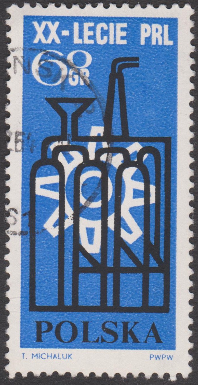 Polen MiNr. 1503 zeigt ein Zahnrad in Kombination mit einem Industriebetrieb: