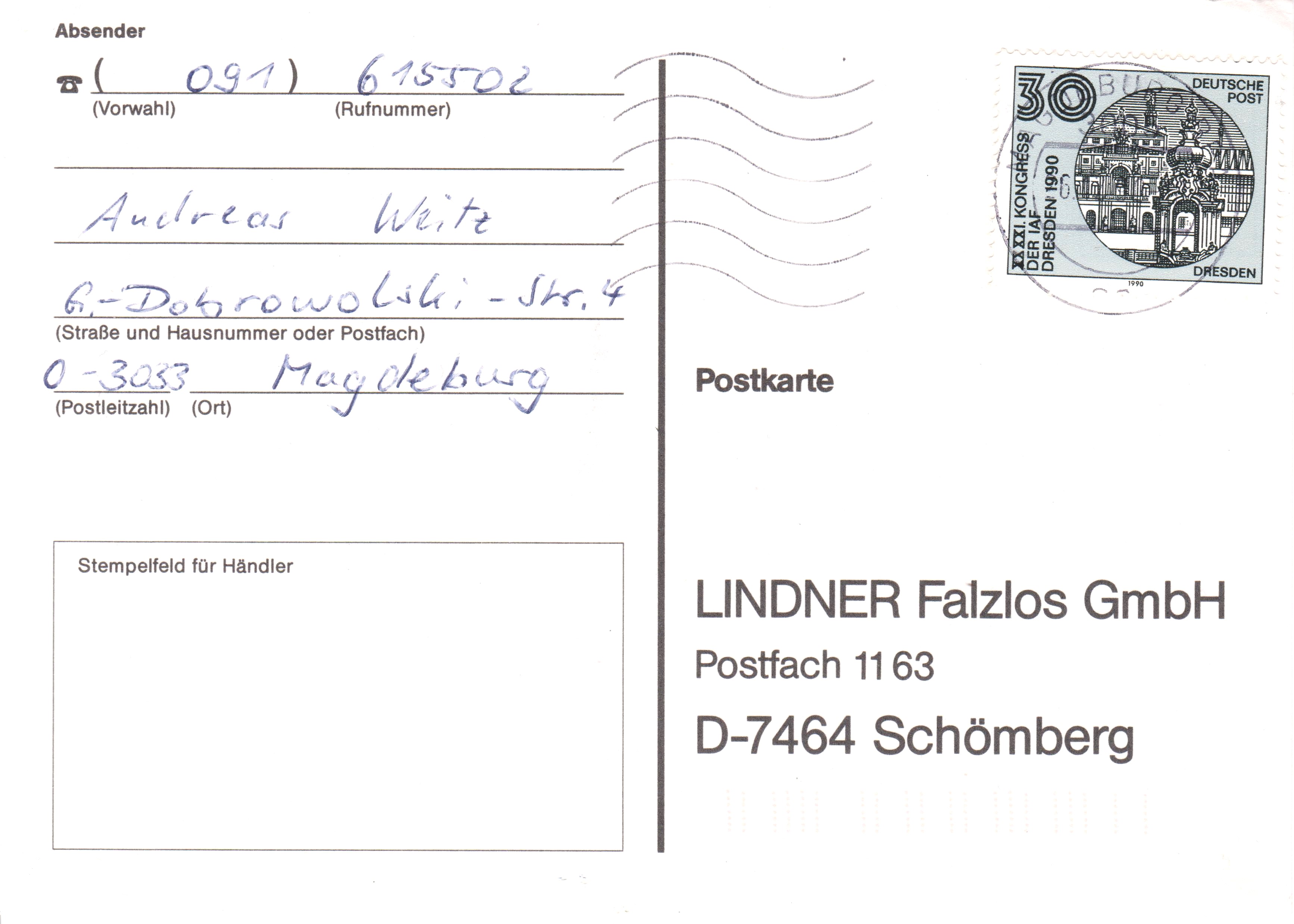 Zum XXXXI. KONGRESS DER IAF DRESDEN 1990 erschien am 02.10.1990 in einer Auflage von 6.000.000 Exemplaren DDR MiNr. 3360, das Bauwerke in Dresden zeigt.