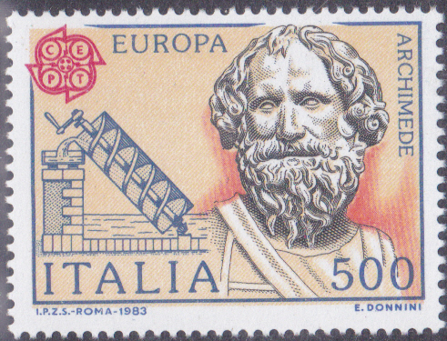 In Italien erschien eine Europamarke 1983 (MiNr 1843) zum Gemeinschaftsthema "Große Werke des menschlichen Geistes" mit einem Porträt von Archimedes von Syrakus.