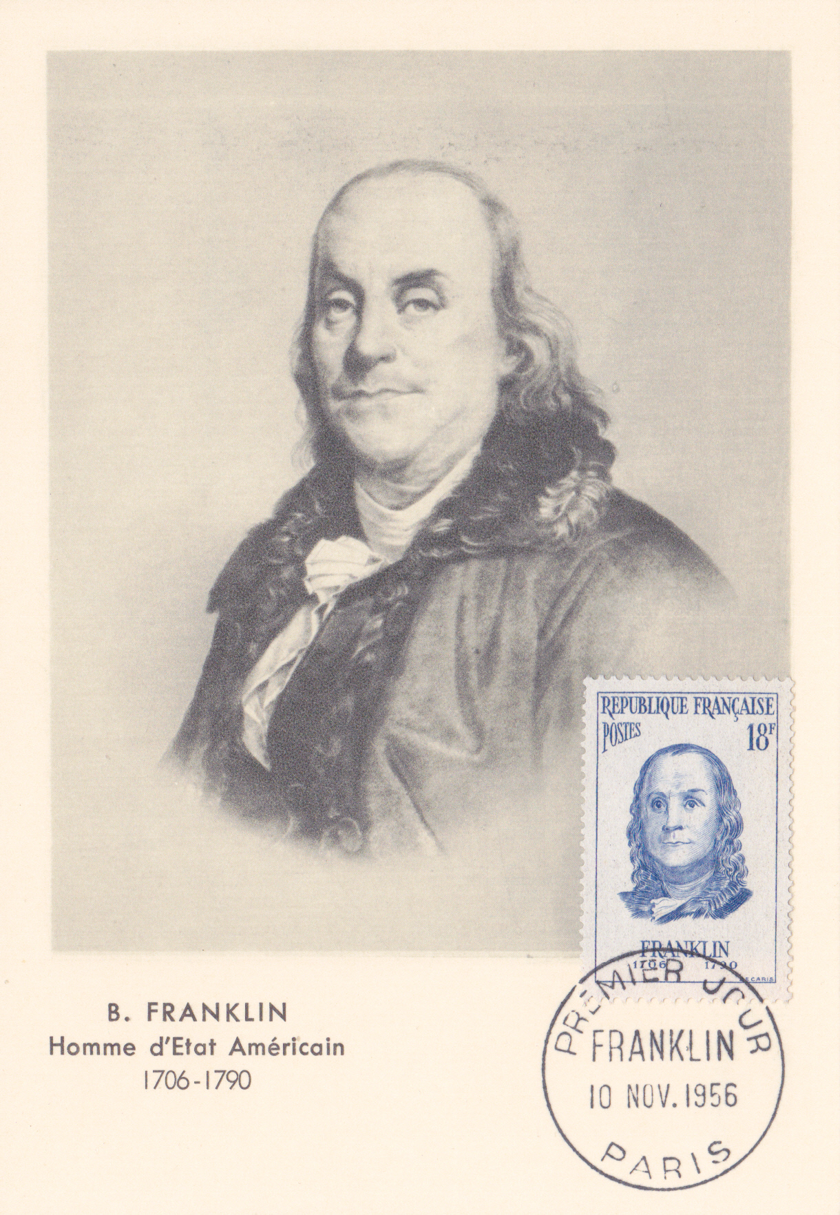 In Frankreich ist diese Marke (MiNr 1113) mit einem Porträt von Benjamin Franklin erschienen.
