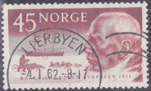 Zum 50. Jahrestag der Ankunft Amundsens am Südpol erschien diese Marle (MiNr 463) mit Roald Amundsen und dem Schiff "Fram".