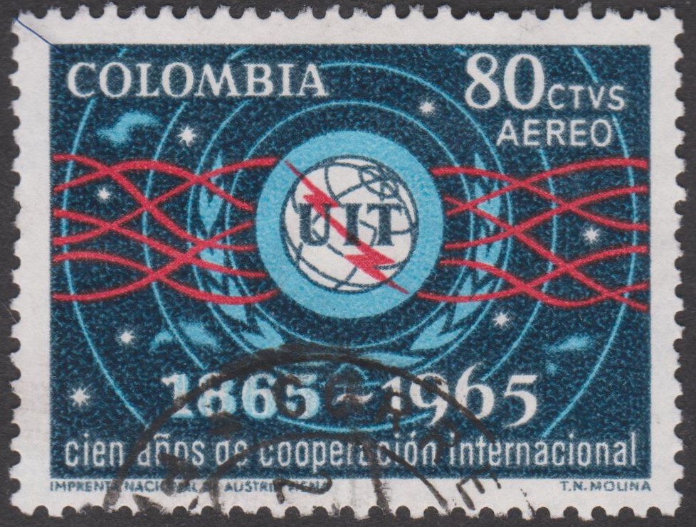 Auf diesem Postwertzeichen, Kolumbien MiNr. 1061, werden elektromagnetische Wellen dargestellt: