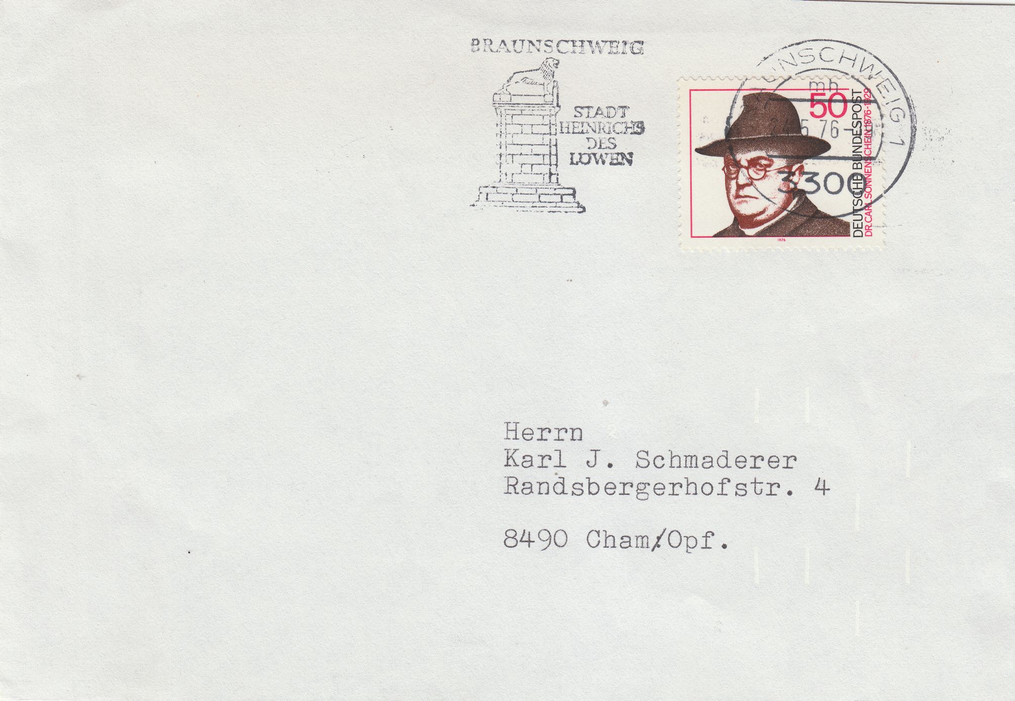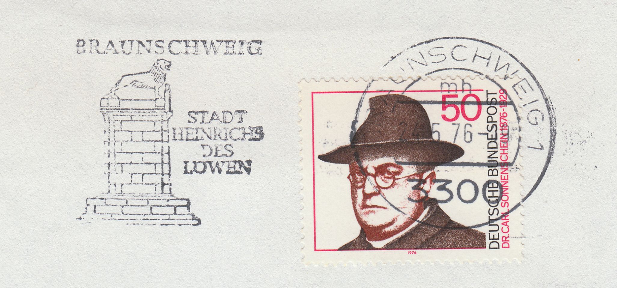 Darstellung des Braunschweiger Löwen im Werbeeinsatz eines Maschinenstempels aus "BRAUNSCHWEIG" als "STADT HEINRICHS DES LÖWEN" am 24.05.1976.