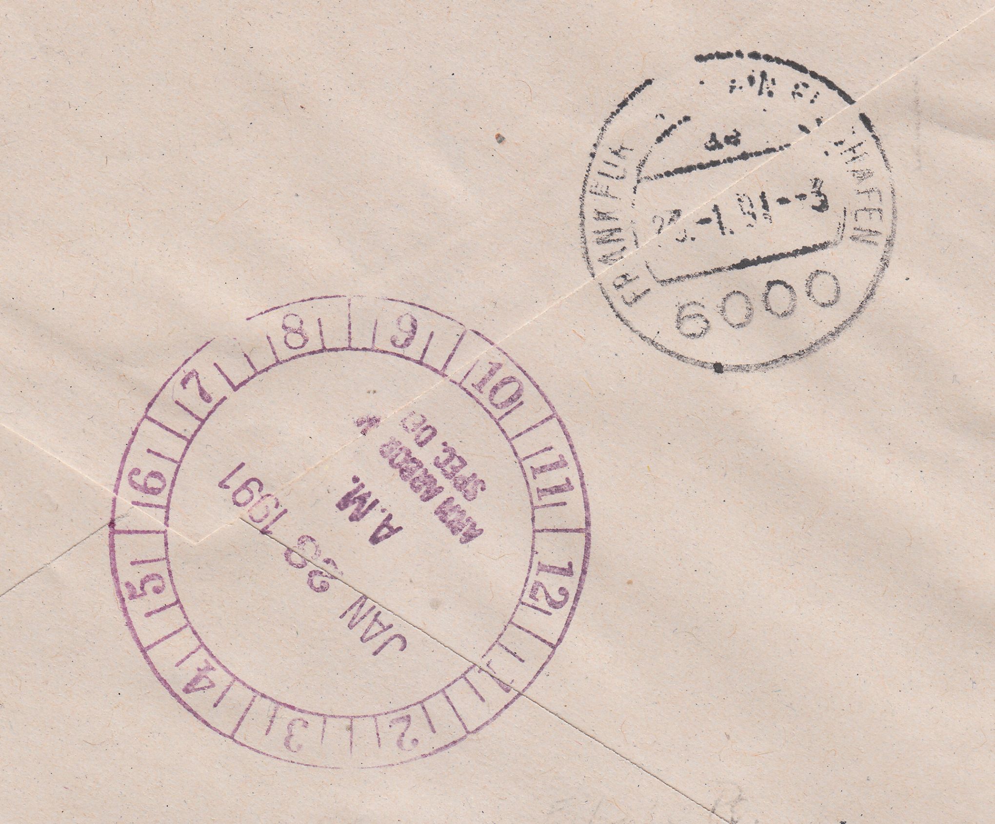 MiF der Wertstufe 5 Pf mit 10 Pf sowie 350 Pf (2), am 22.01.1991 portorichtig auf Auslandsbrief (140 Pf) per Eilzustellung (500 Pf) und Luftpost (25 Pf je 5 g = hier 75 Pf für 11 - 15 g) in die USA: