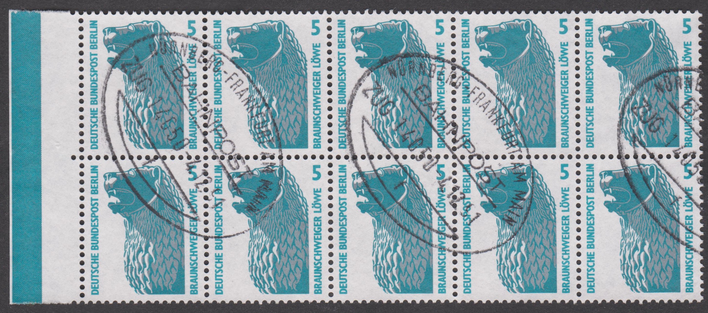 Zehnerblock vom linken Bogenrand mit Stempel "NÜRNBERG-FRANKFURT AM MAIN ZUG 14050" vom 04.12.1991: