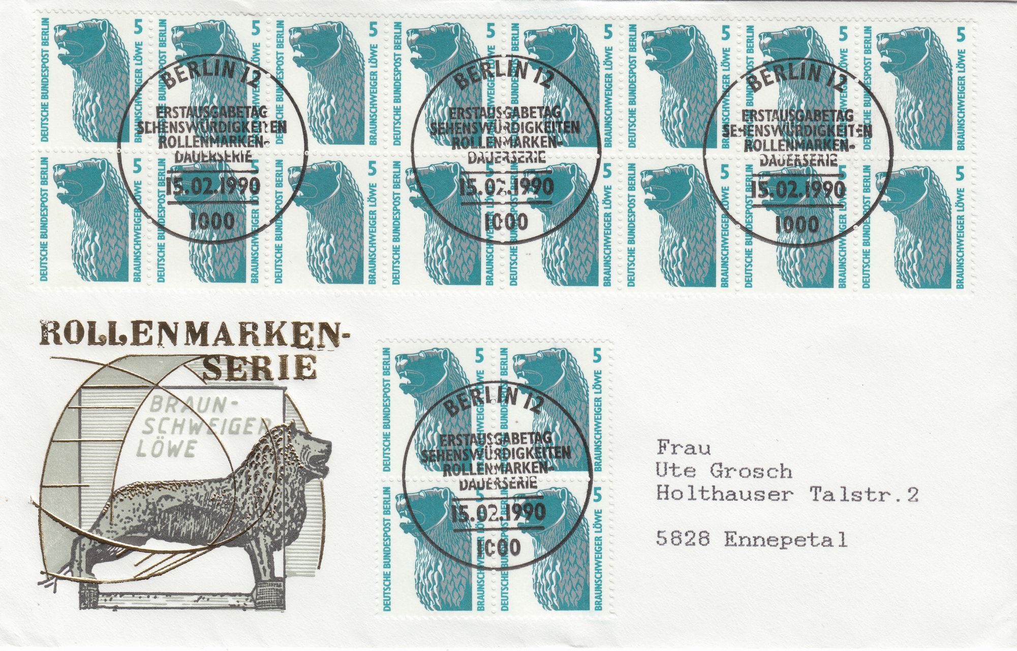 Foren-Übersicht Fragen und Diskussion Deutschland Deutschland ab 1945 Berlin Dauerserien Sehenswürdigkeiten = SWK 5 Pfennig - MiNr. 863 Ein Exponat entsteht Das philatelistische Material MeF 5 Pf (20), Bogenmarken auf Brief mit ESST "BERLIN 12"