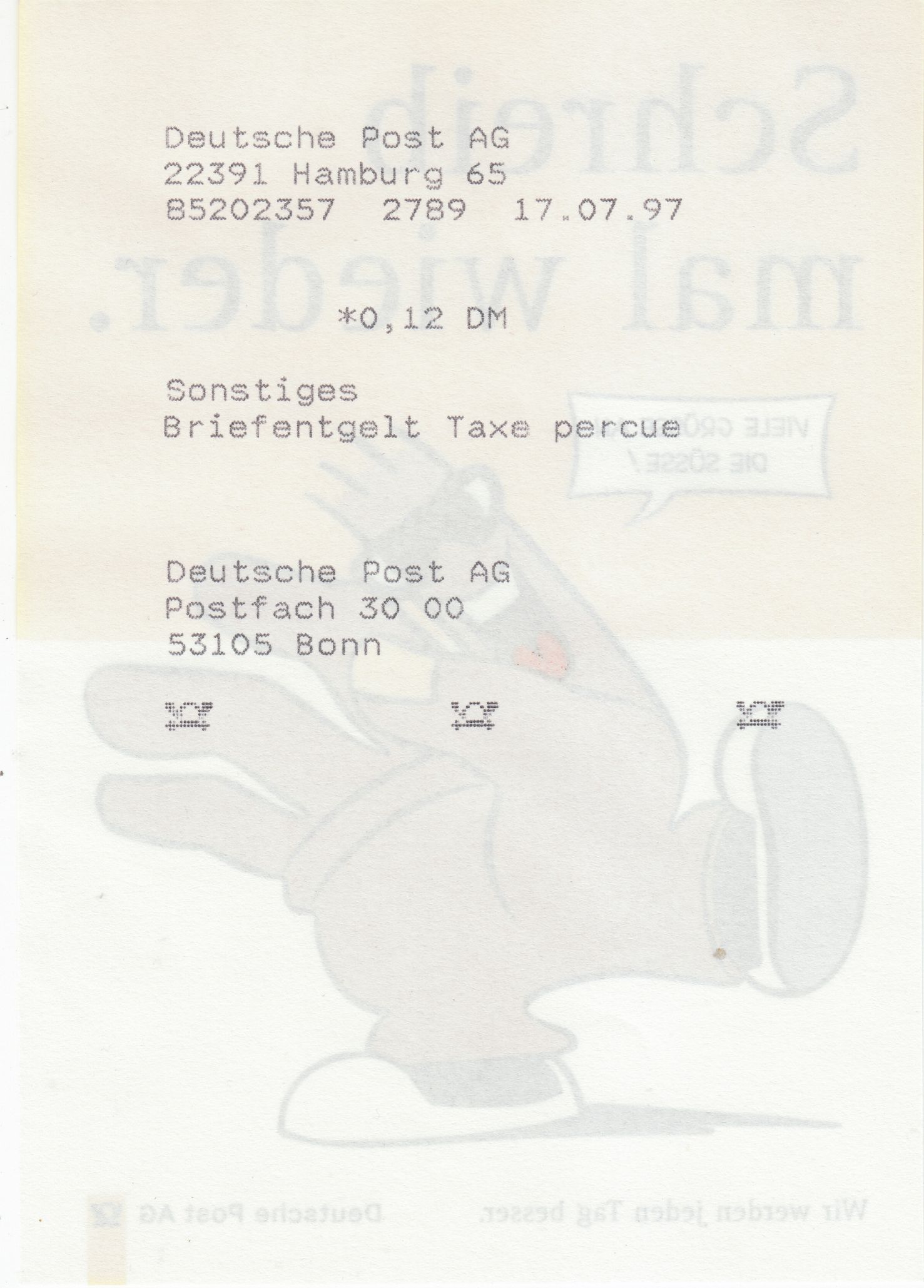 Und hier die passende Quittung dazu: