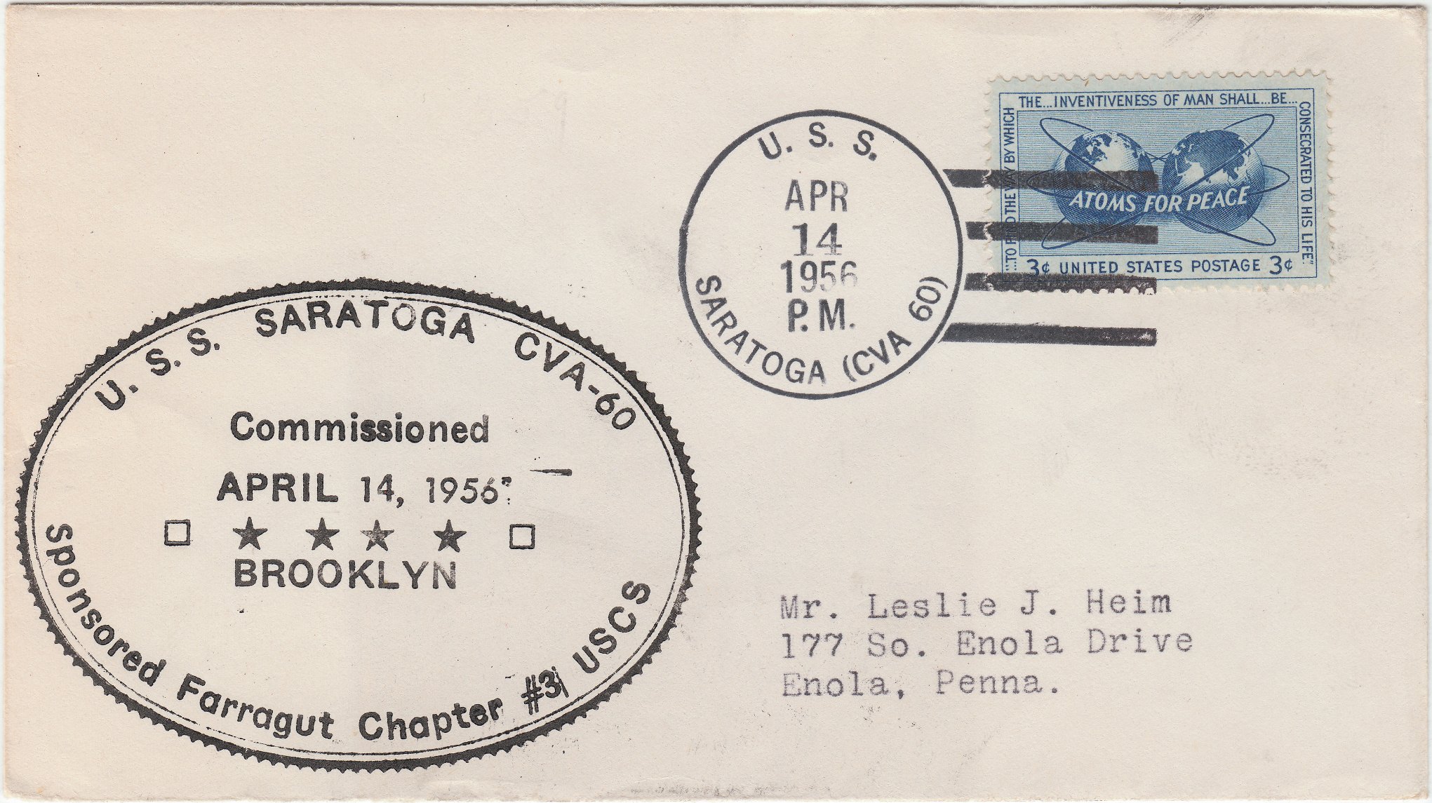 Getauft von der Witwe des US-Senators Charles Spalding Thomas lief der Flugzeugträger am 08.10.1955 vom Stapel und wurde nach weiteren Ausrüstungen am 14.04.1956 unter Captain R.J. Stroh in Dienst gestellt, englisch "Commissioned", was dieser Beleg dokumentiert.