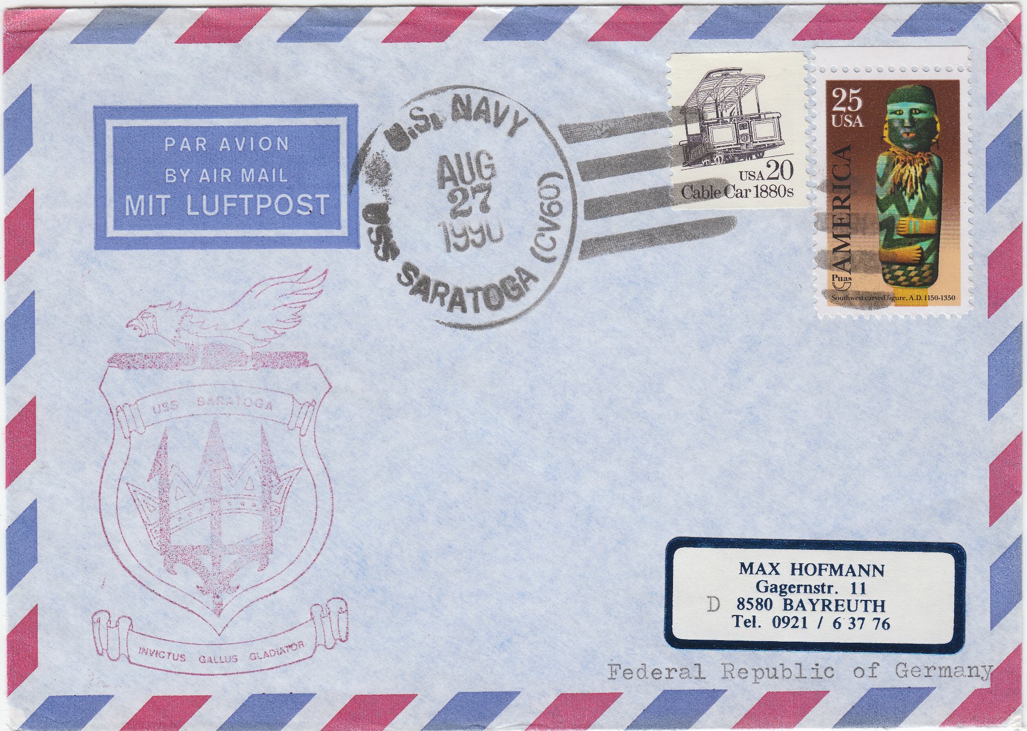 Getauft von der Witwe des US-Senators Charles Spalding Thomas lief der Flugzeugträger am 08.10.1955 vom Stapel und wurde nach weiteren Ausrüstungen am 14.04.1956 unter Captain R.J. Stroh in Dienst gestellt, englisch "Commissioned", was dieser Beleg dokumentiert.