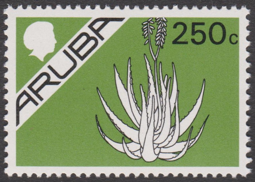 Am 05.02.1986 erschien zum Thema "Gebäude, Tiere und Leben auf Aruba" diese Freimarke in der Wertstufe 250 c, Aruba MiNr. 12: