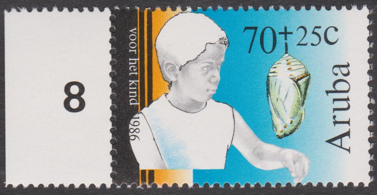 Diese Jugendmarke, Aruba MiNr. 19, zeigt einen Kokon: