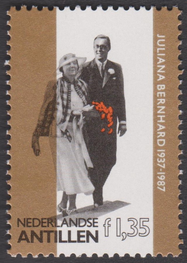 Anlass für diese Sondermarke war die Goldene Hochzeit von Juliana und Bernhard. Das Postwertzeichen zeigt die Beiden als Brautpaar.