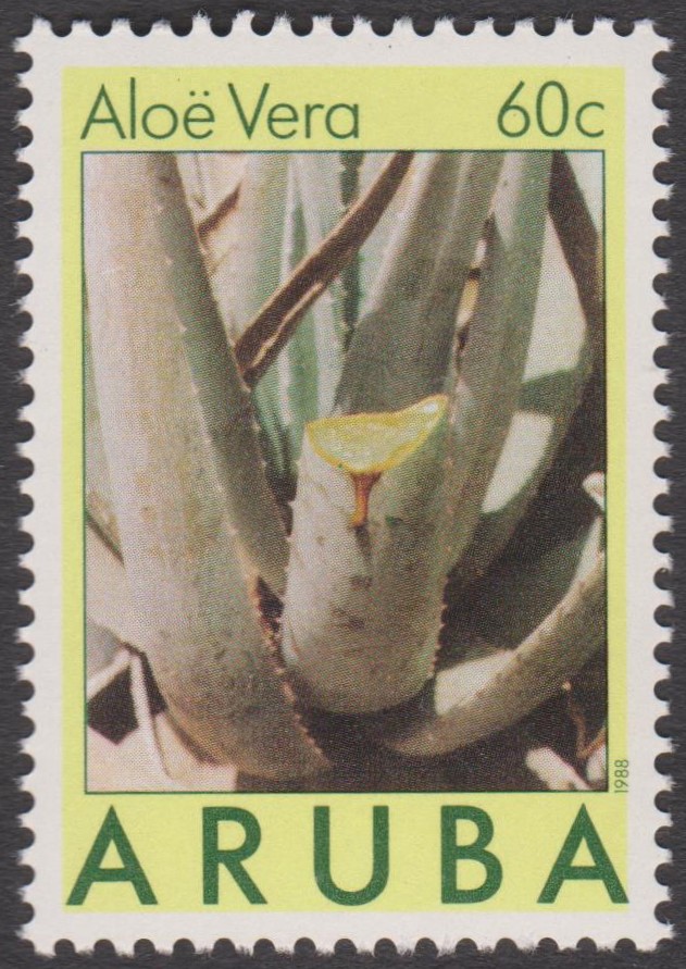 Aruba MiNr. 38 erschien am 27.01.1988 zum Thema Aloeanbau und zeigt Echte Aloe (Aloe vera):