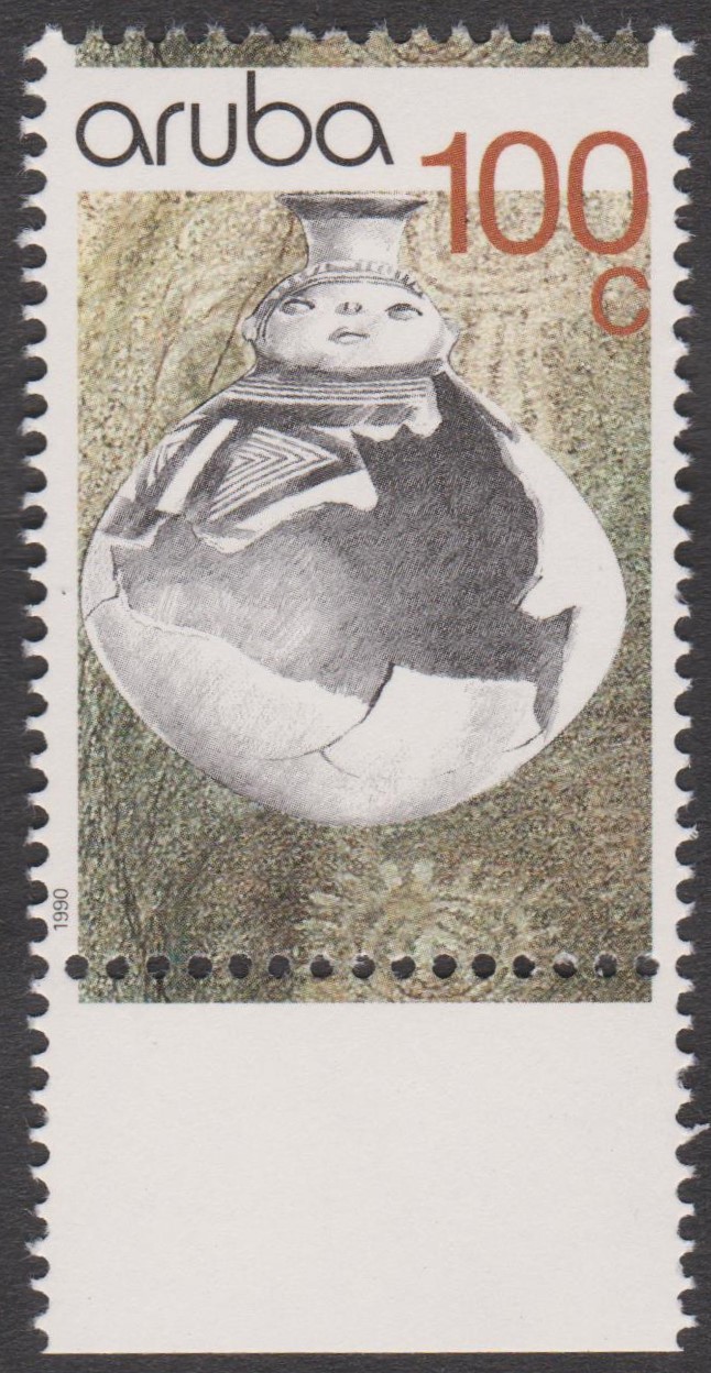 Aruba MiNr. 82 erschien am 12.09.1990 zum Thema "Archäologische Funde" und zeigt das Motiv "Zerbrochener Krug":