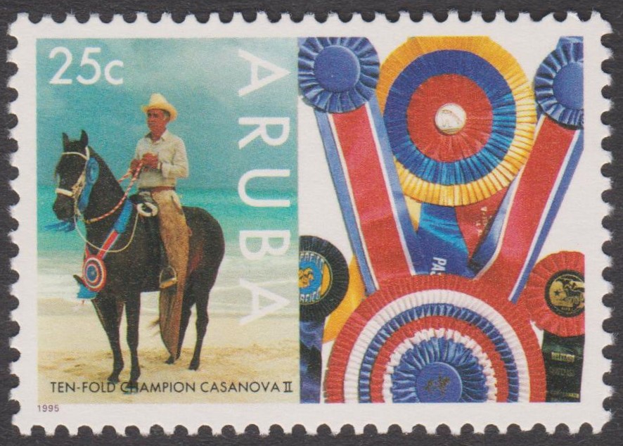 Aruba MiNr. 156 erschien am 26.05.1995 aus Anlaß "10 Jahre Internationale Pferdeschau Interpaso":