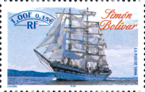 Auf einer Marke aus Frankreich (MiNr 3410) aus der Serie zur Schiffsparade "Armada du Siècle" in Rouen" ist die Bark "Simón Bolivar" abgebildet.