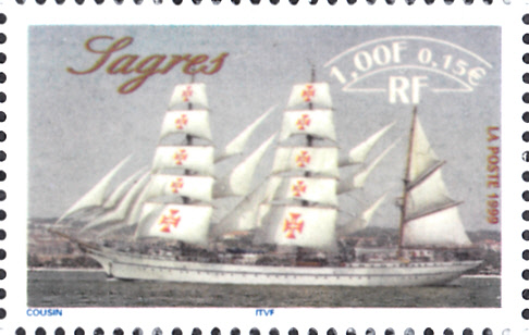Auf einer Marke aus Frankreich (MiNr 3417) aus der Serie zur Schiffsparade "Armada du Siècle" in Rouen" ist die Bark "Sagres II" abgebildet.