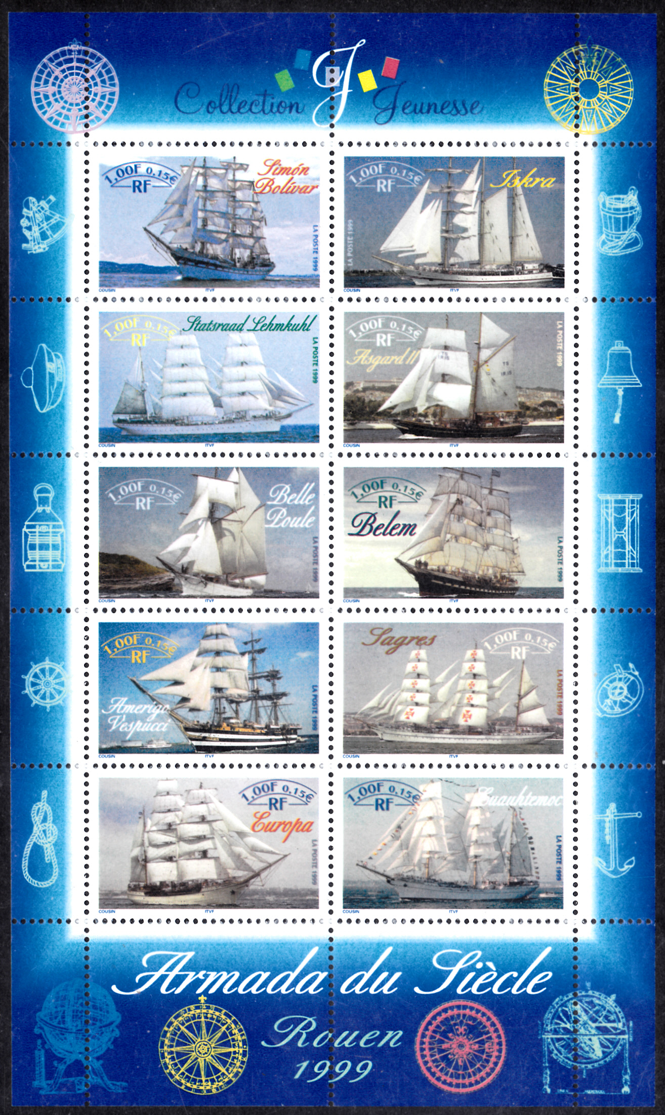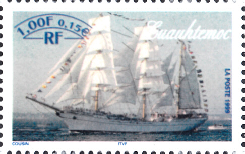 Auf einer Marke aus Frankreich (MiNr 3419) aus der Serie zur Schiffsparade "Armada du Siècle" in Rouen" ist die Bark "Cuauhtémoc" abgebildet.