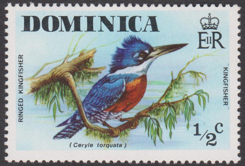 Dominica MiNr. 481 erschien am 28.06.1976 und zeigt einenh KINGFISHER = Königsfischer: