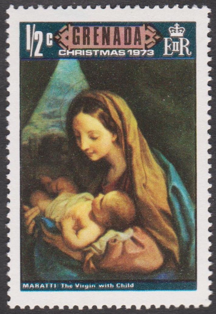 Grenada MiNr. 542 erschien am 10.12.1973 und zeigt ein Gemälde von Carlo Maratti "Heilige Jungfrau mit Kind":