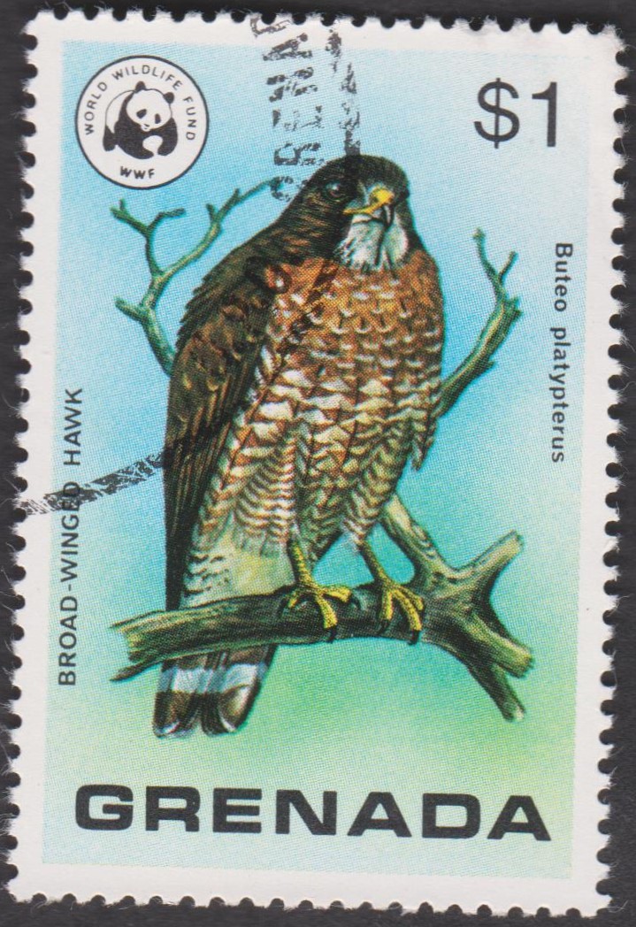 Grenada MiNr. 886 erschien am 08.03.1978 zum Thema "World Wildlife Fund" und zeigt einen Breitflügelbussard: