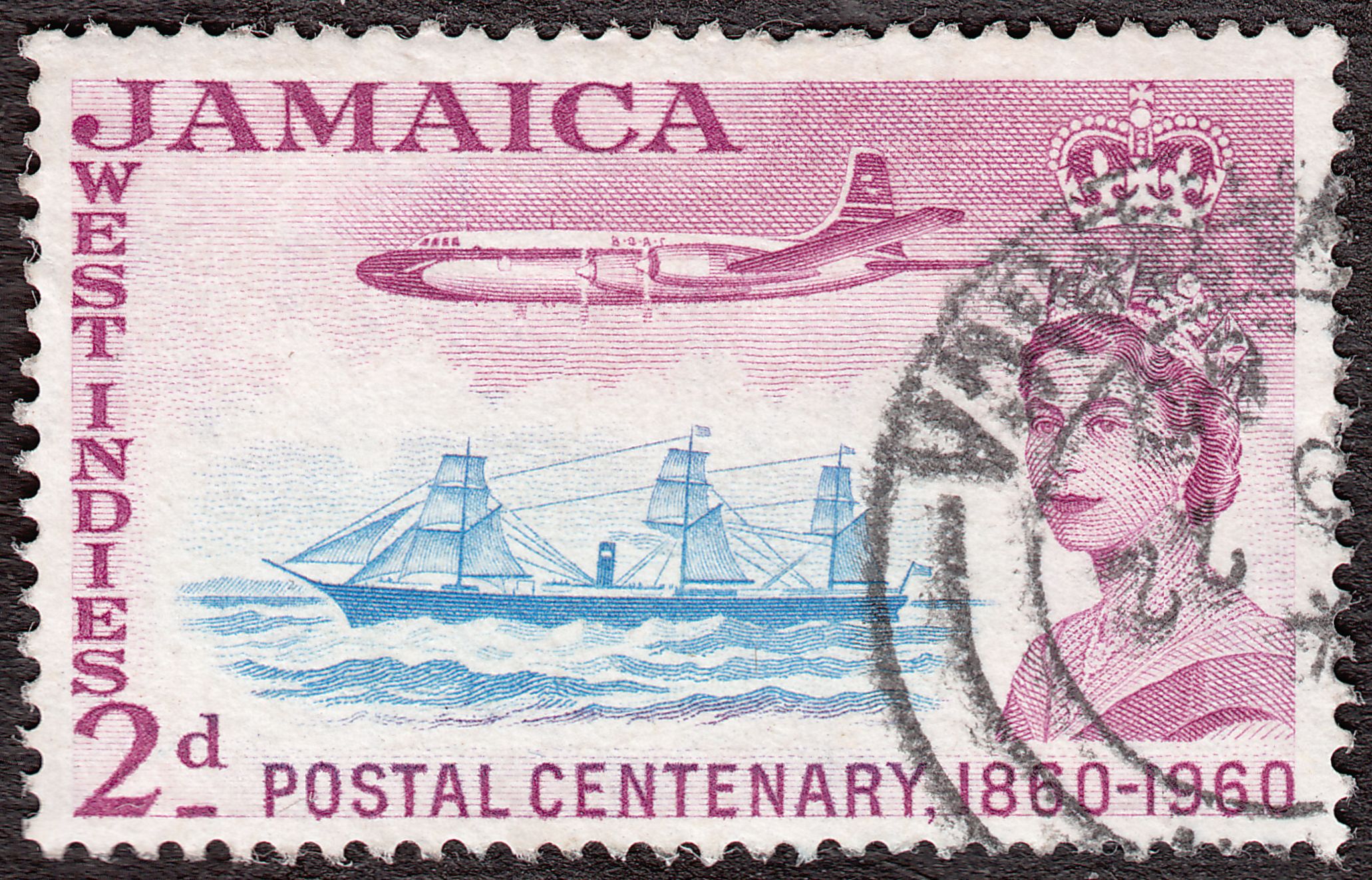 Diese Ausgabe erschien am 04.01.1960 aus Anlaß "100 Jahre Briefmarken auf Jamaica", MiNr. 180: