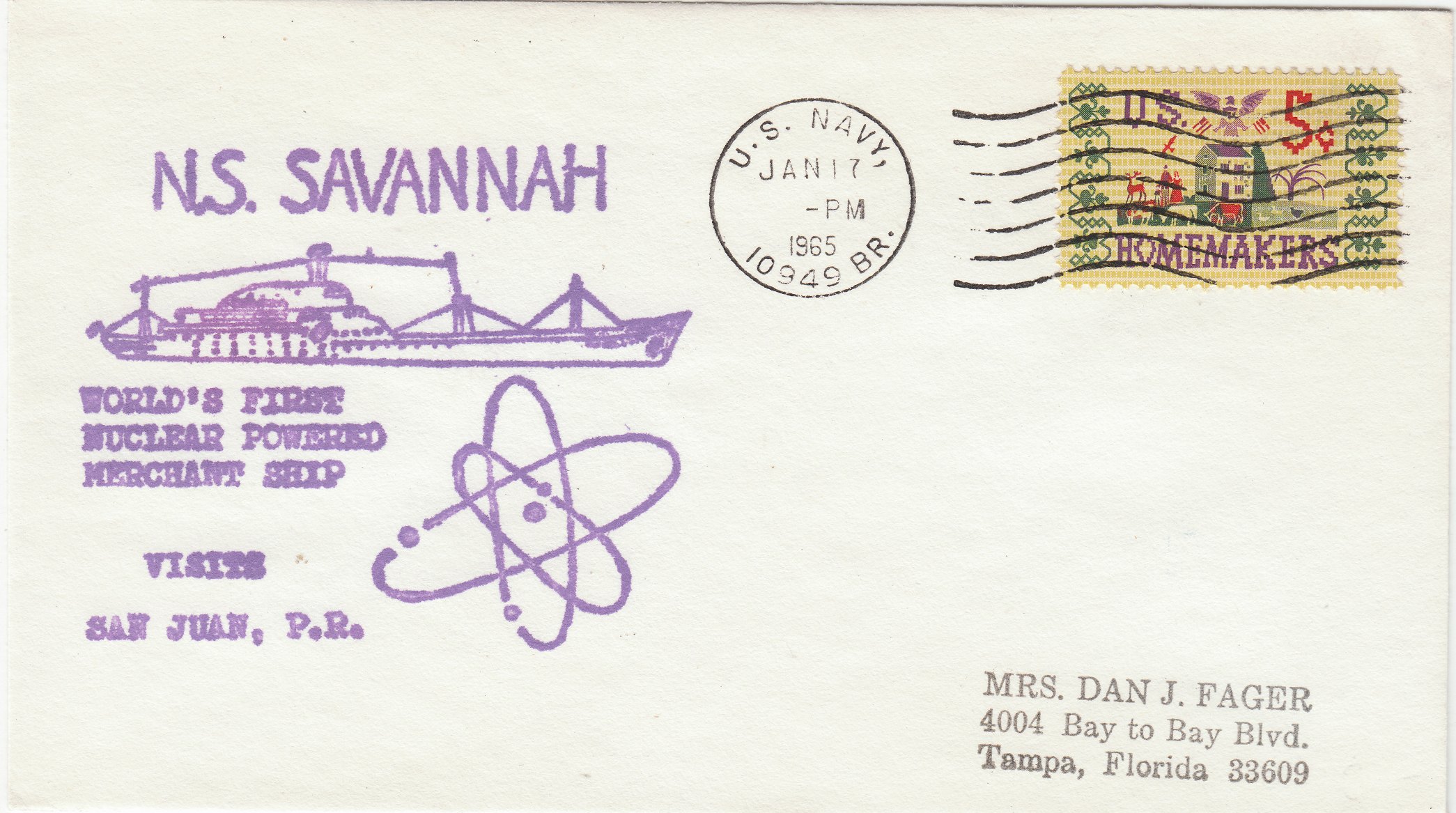 Dieser am 08.06.1964 in New York aufgegebene Beleg dokumentiert per entsprechendem Cachetstempel die erste Atlantiküberquerung der NS SAVANNAH von New York nach Bremerhaven: