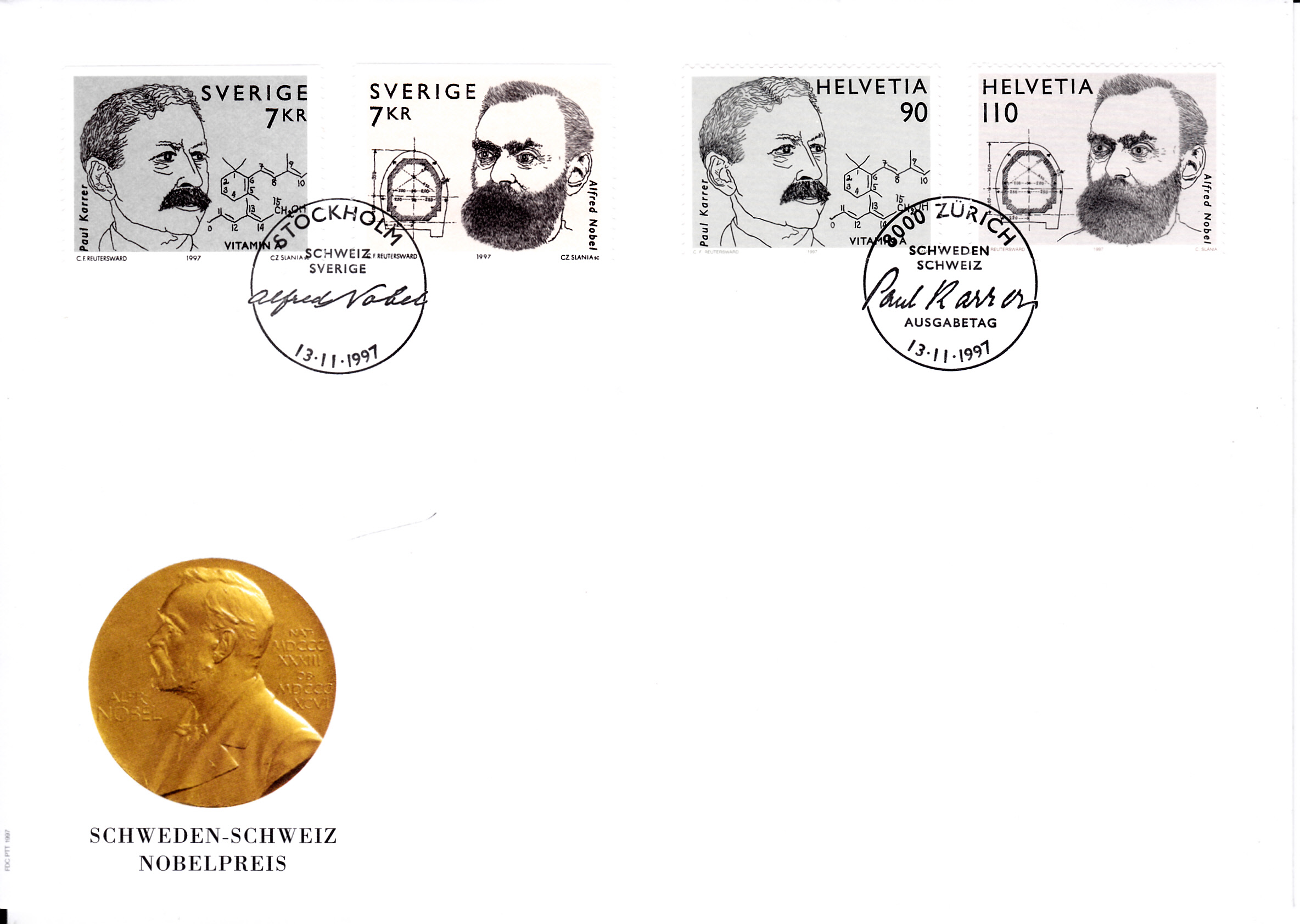Eine bildgleiche Marke mit Alfred Nobel ist in Schweden (MiNr 2026) erschienen.