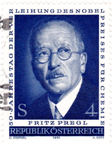 Fritz Pregl (geb. 3. Sep. 1869 in Laibach, Österreich-Ungarn, heute Slowenien; gest. 13. Dez. 1930 in Graz) war ein österreichischer Physiologe und Chemiker. Er hat 1916 mit der mikroanalytischen Untersuchung organischer Stoffe begonnen. Im Jahr 1923 erhielt er den Nobelpreis für Chemie "für die von ihm entwickelte Mikroanalyse organischer Substanzen".