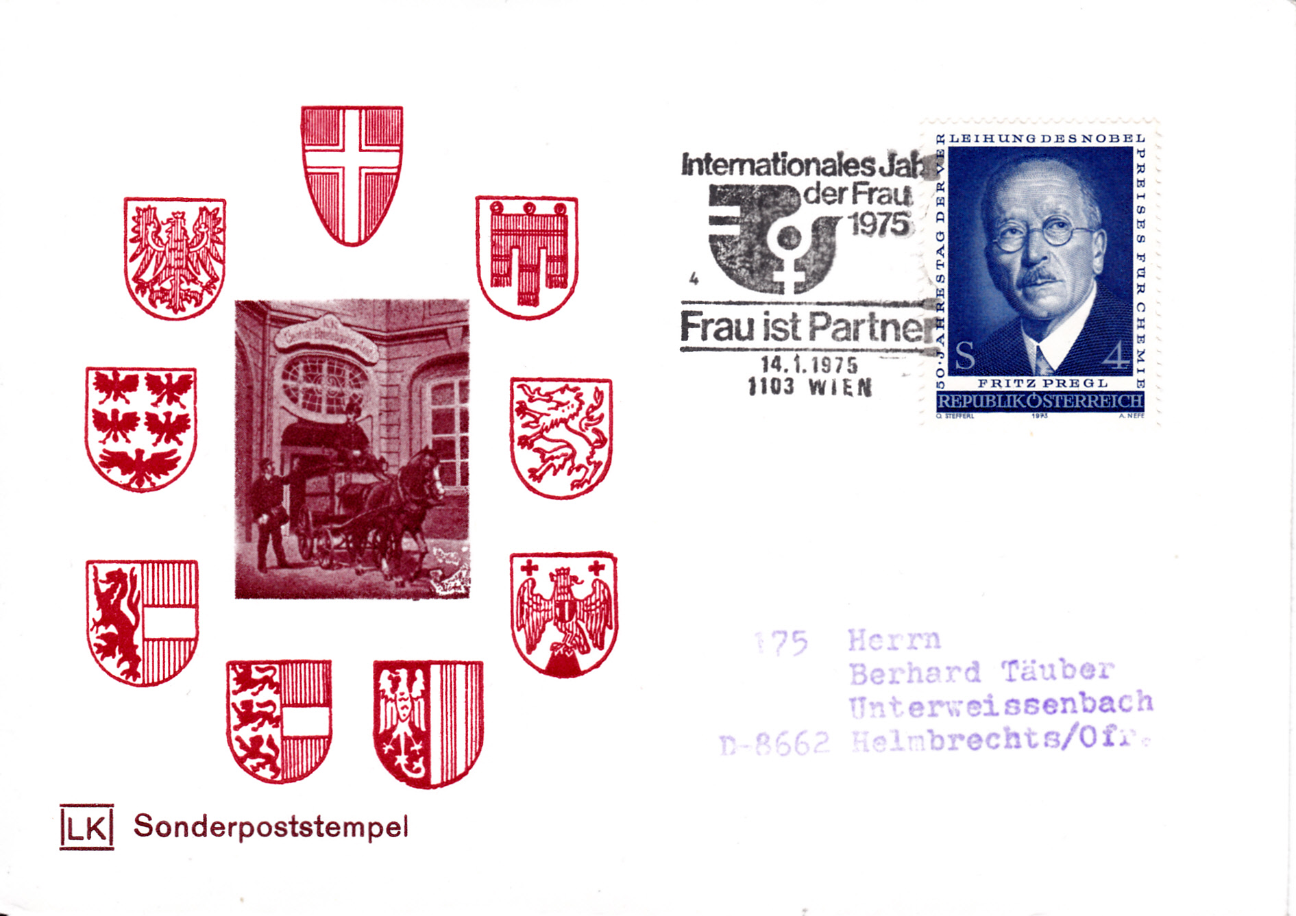 Auf diesem Brief wurde eine Marke mit einem Sonderstempel aus Wien gestempelt.