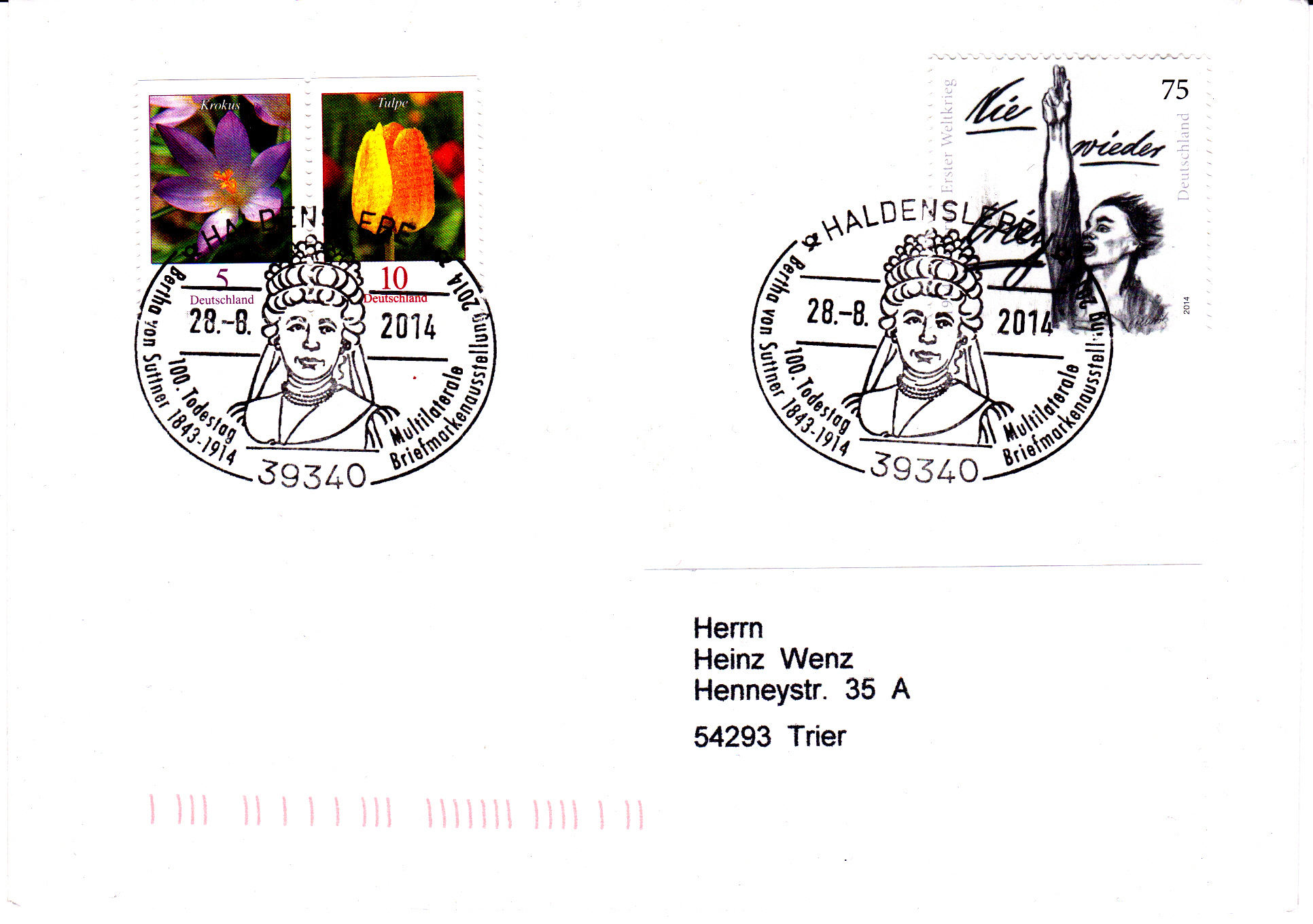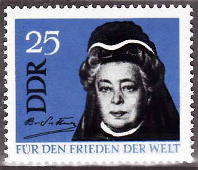 In der Serie "Für den Weltfrieden" aus der DDR ist eine Marke (MiNr 1050) Bertha Freifrau von Suttner gewidmet. Die Marke zeigt ein Porträt und ihre Unterschrift.