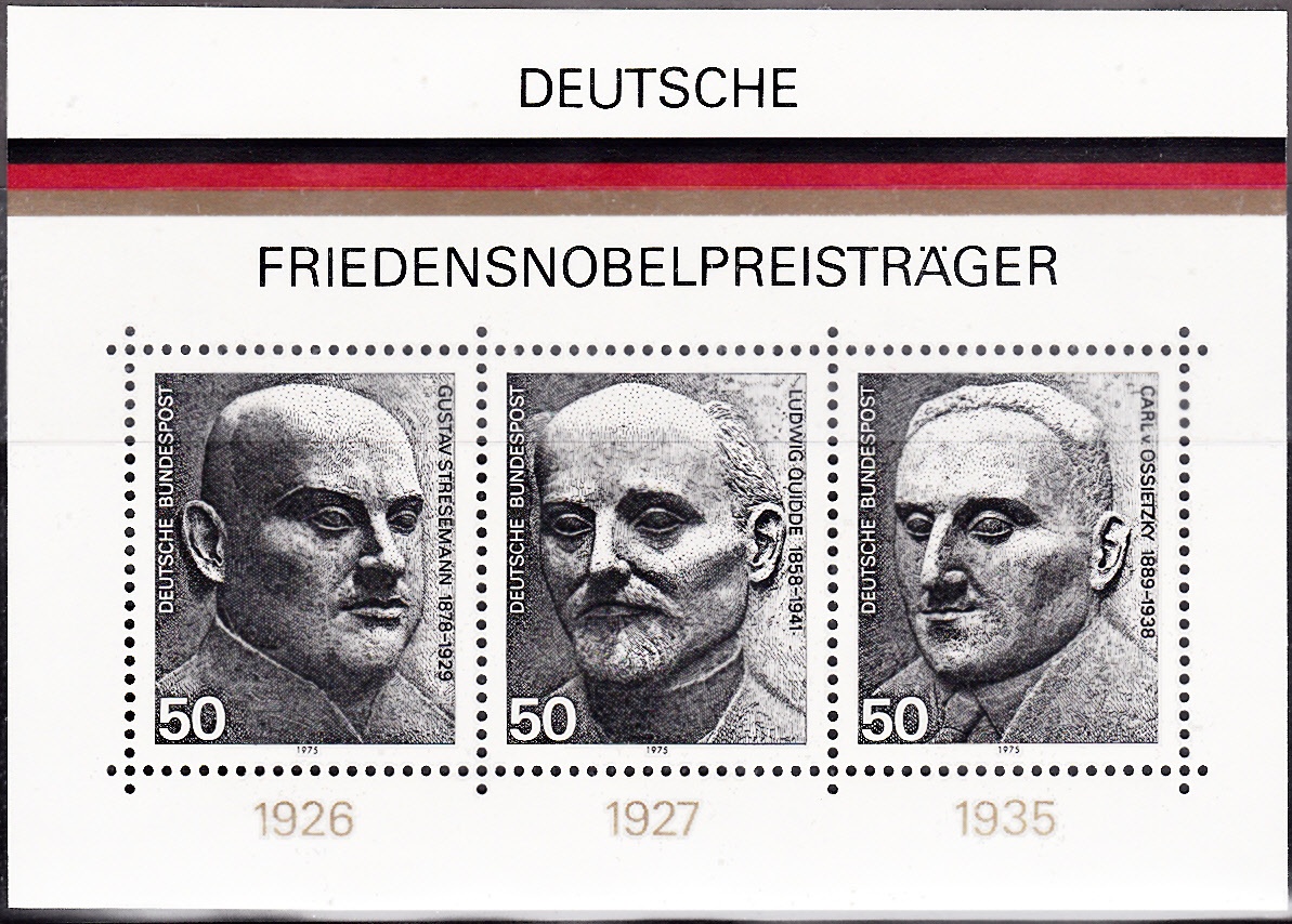 Die Deutsche Bundespost verausgabte eine Marke (MiNr 872) im Block "Deutsche Friedensnobelpreisträger" (MiNr Block 11) mit einem Porträt von Ludwig Quidde.