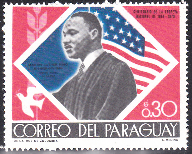 Auf einer Marke aus Paraguay aus der Serie "Ereignisse des Jahres 1968" wird auch Martin Luther King gewürdigt, der am 4.4.1967 bei einem Attentat getötet wurde.