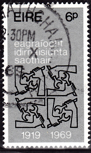 1969 erschienen in Irland zwei bildgleiche Marken "50 Jahre Internationale Arbeitsorganisation (ILO)" mit dem ILO-Emblem (vierfach).