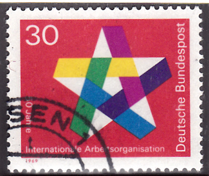 Auch die Deutsche Bundespost gab eine Sondermarke aus Anlass "50 Jahre Internationale Arbeitsorganisation" heraus (MiNr 582).