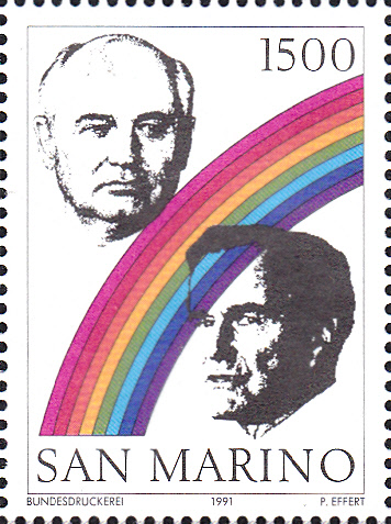 In San Marino erschien 1991 eine Marke (MiNr 1485) mit einem Porträt von Michail Dorbatschow und George Bush in einer Blockausgabe "Geburt des neuen Europa" (MiNr Block 14).