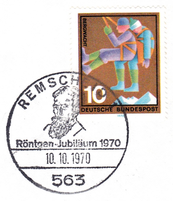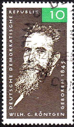 Zum 120. Geburtstag vom W. C. Röntgen erschien in der DDR diese Sondermarke (MiNr 1096) mit seinem Porträt.
