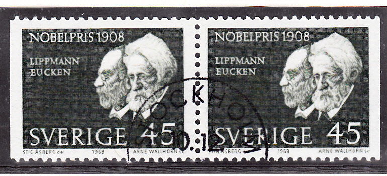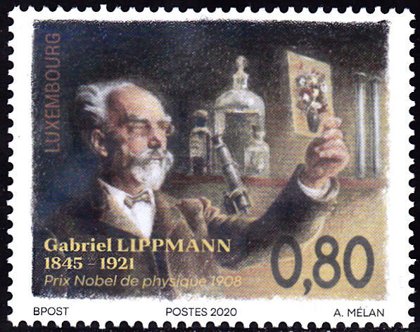 In Schweden ist 1968 eine Marke (MiNr 627) erschienen, die auch ein Porträt von Gabriel Lippmann zeigt. Hier ein Paar aus dem Markenheftchen (627Dl/627Dr).