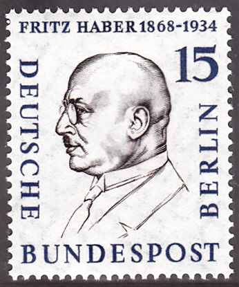 Fritz Haber (geb. 9. Dezember 1868 in Breslau; gest. 29. Januar 1934 in Basel) war ein deutscher Chemiker. Im Jahr 1919 wurde er mit dem Nobelpreis für Chemie des Jahres 1918 "für die katalytische Synthese von Ammoniak aus dessen Elementen Stickstoff und Wasserstoff" ausgezeichnet.