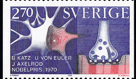 1984 erschien in Schweden in einer Ausgabe mit Marken zu "Nobelpreisträger für Physiologie und Medizin" auch eine Marke (MiNr 1313) zum Nobelpreis für Axelrod, Katz und von Euler. Im Markenbild werden eine Nervenzelle und eine Synapse dargestellt, passend zu den Forschungen der drei Wissenschaftler.