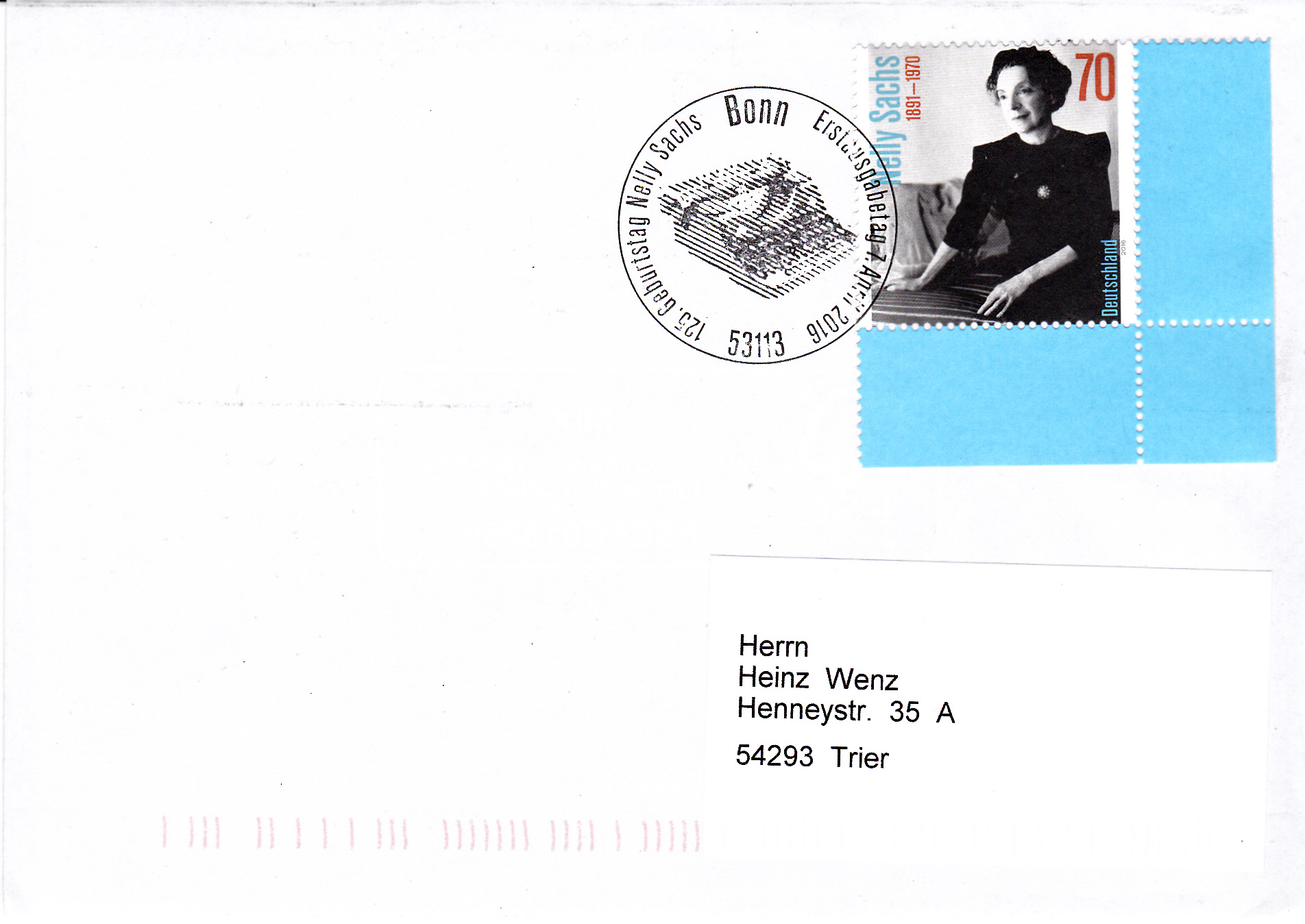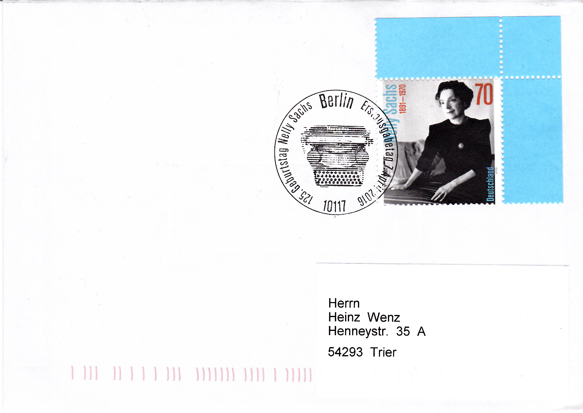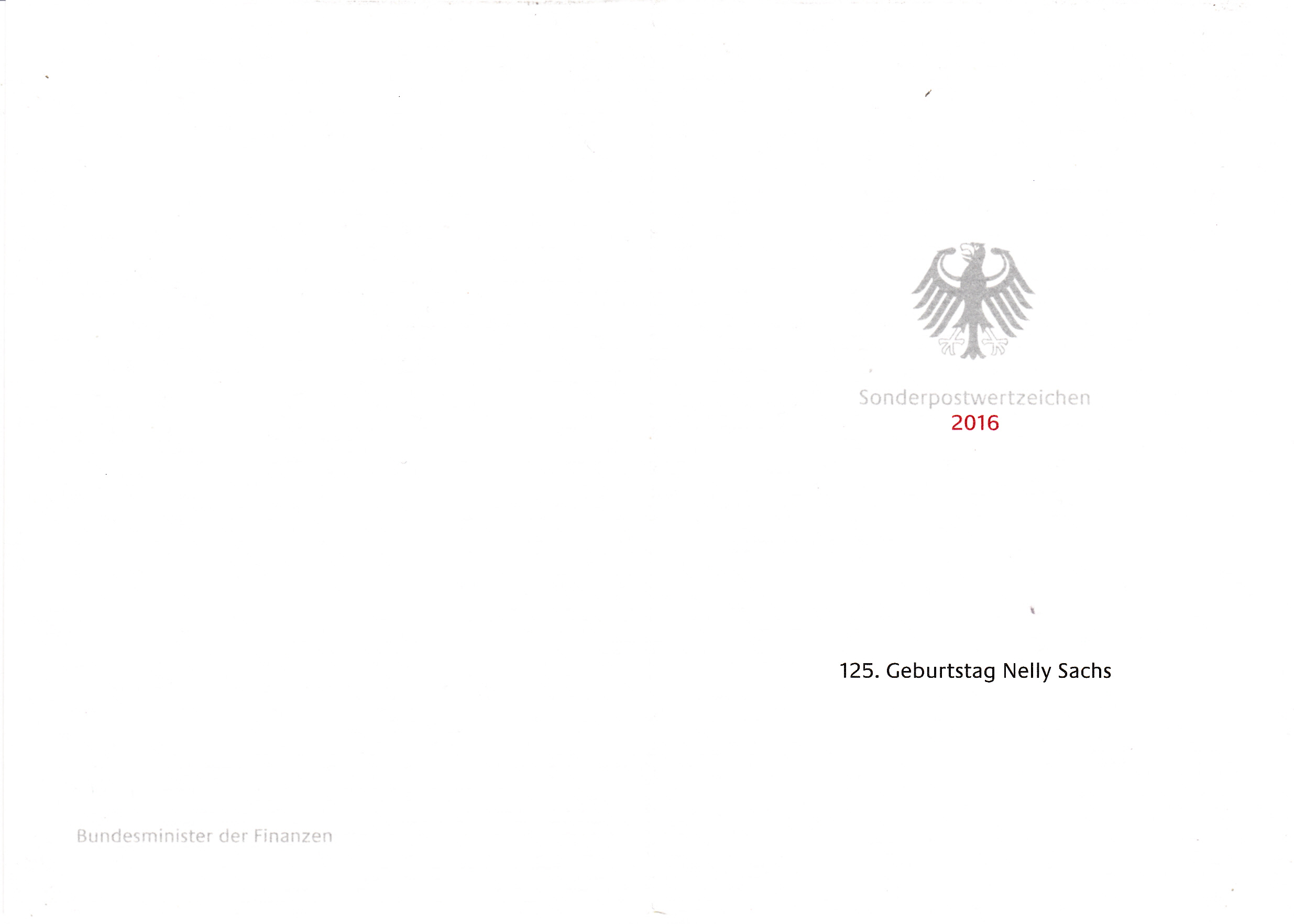 In Schweden ist im Jahr 200 in einer Ausgabe "Nobelpreisträgerinnen für Literatur" auch eine Marke (MiNr 2201) für Nelly Sachs mit ihrem Porträt erschienen.