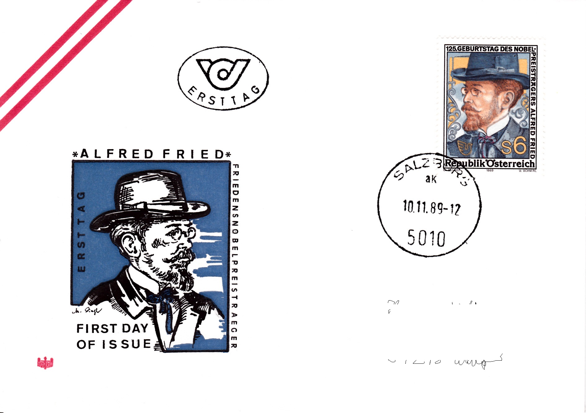 Zum 125. Geburtstag von Alfred Hermann Fried ist in Österreich eine Marke (MiNr 1976) mit seinem Porträt erschienen.