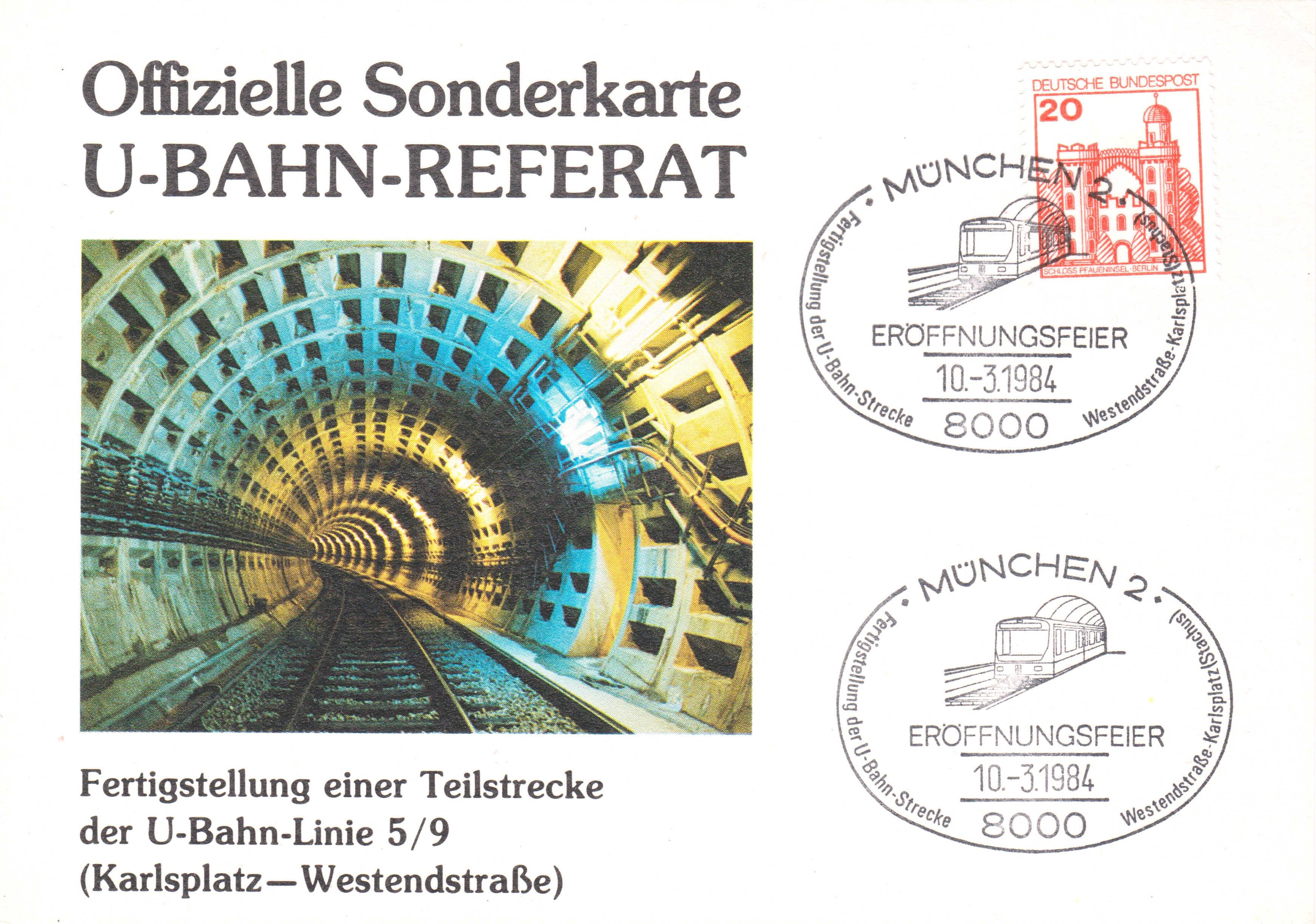 "Offizielle Sonderkarte U-BAHN-REFERAT", aufgelegt zur Eröffnungsfeier am 10.03.1984 in München: