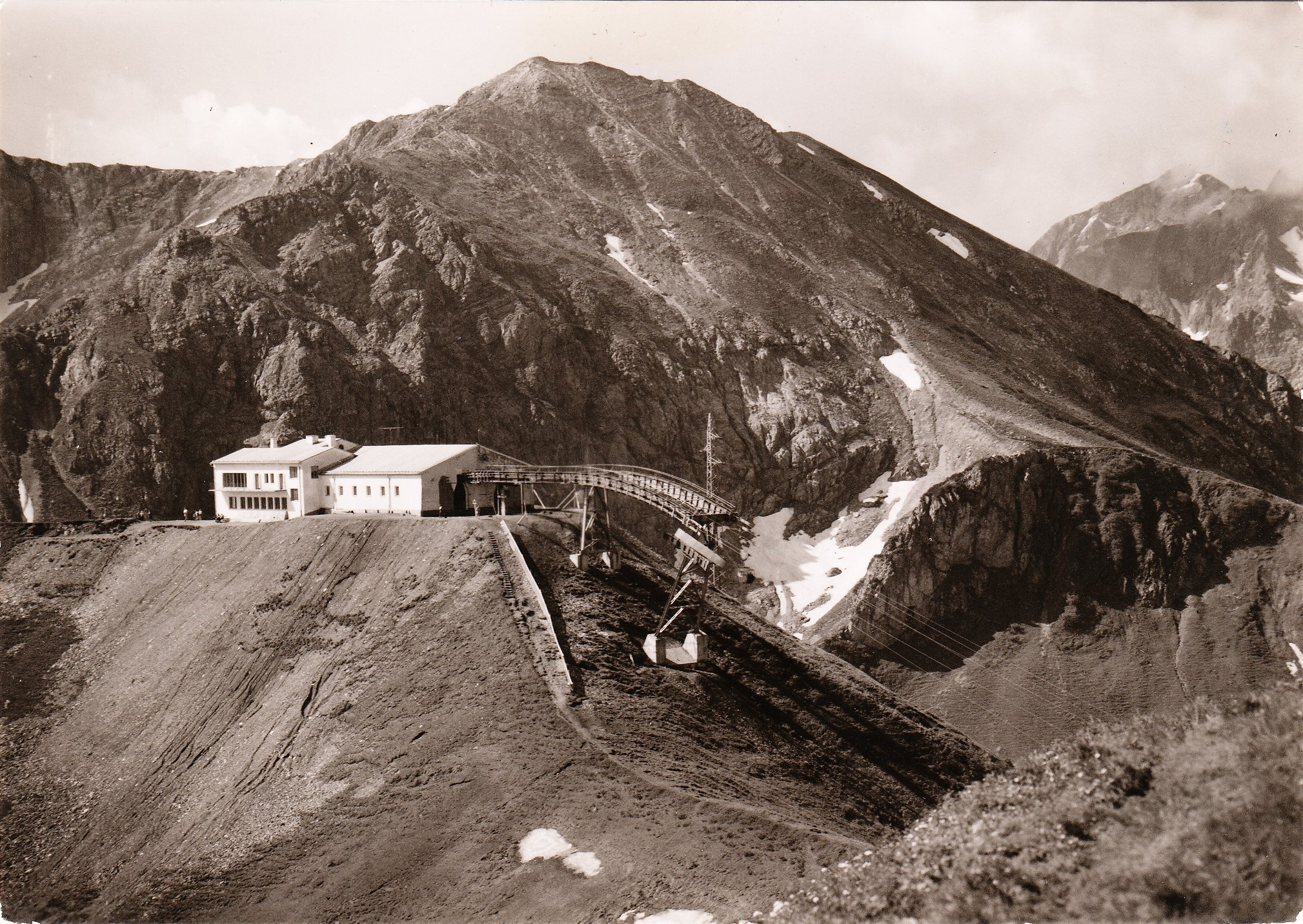 Hier eine Ansichtskarte mit dem Motiv der Bergstation der Kanzelwandbahn auf 2000 m Höhe vor der Hammerspitze, die 2168 m hoch ist: