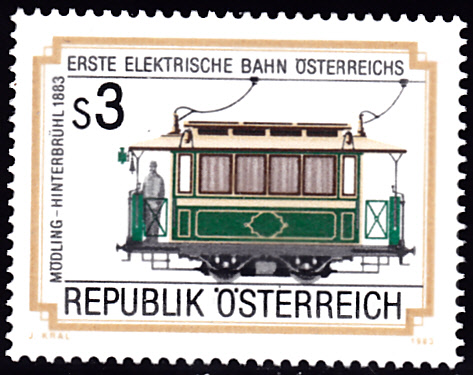 Auf dieser Marke aus Österreich (MiNr 1757) wird ein der Triebwagen Nr. 5 aus dem Jahre 1883 der Lokalbahn Mödling–Hinterbrühl gezeigt.