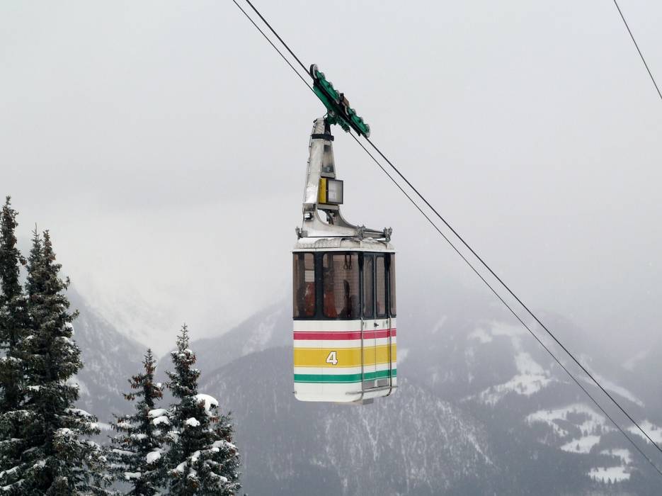 Bei der 1960 gebauten Tauernseilbahn handelt es sich um eine Luftseilbahn in Form einer 8er Kabinenseilbahn = Gondelbahn, hier ein Originalfoto der 8er Kabine mit der Nummer "4":