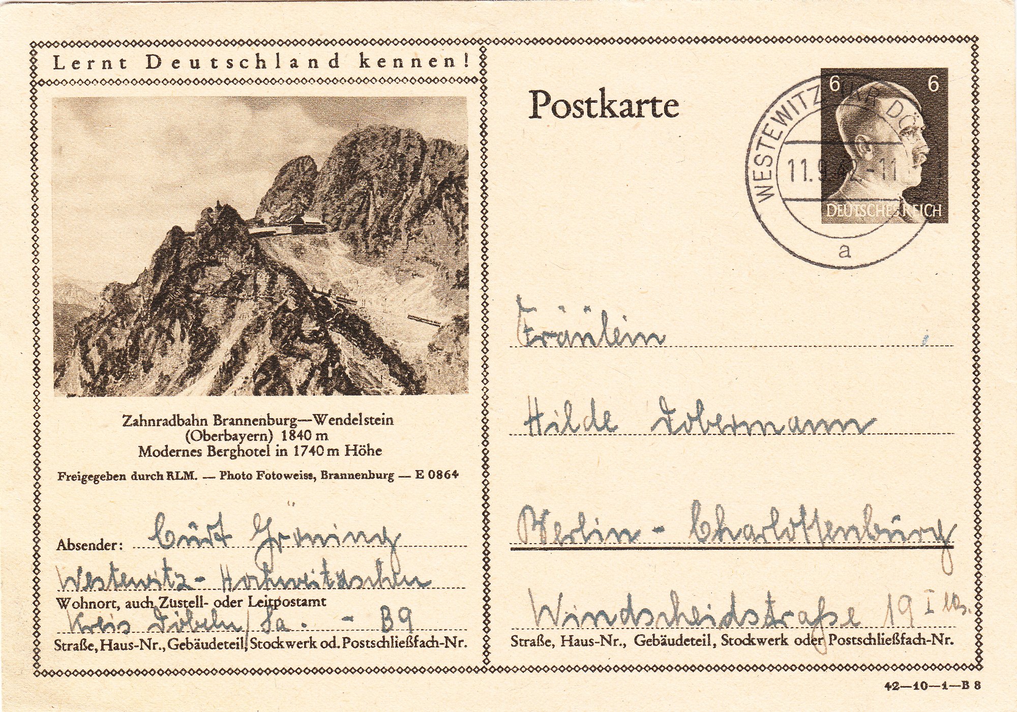 Hier eine Postkarte aus dem Jahre 1942 mit entsprechendem Bildzudruck: