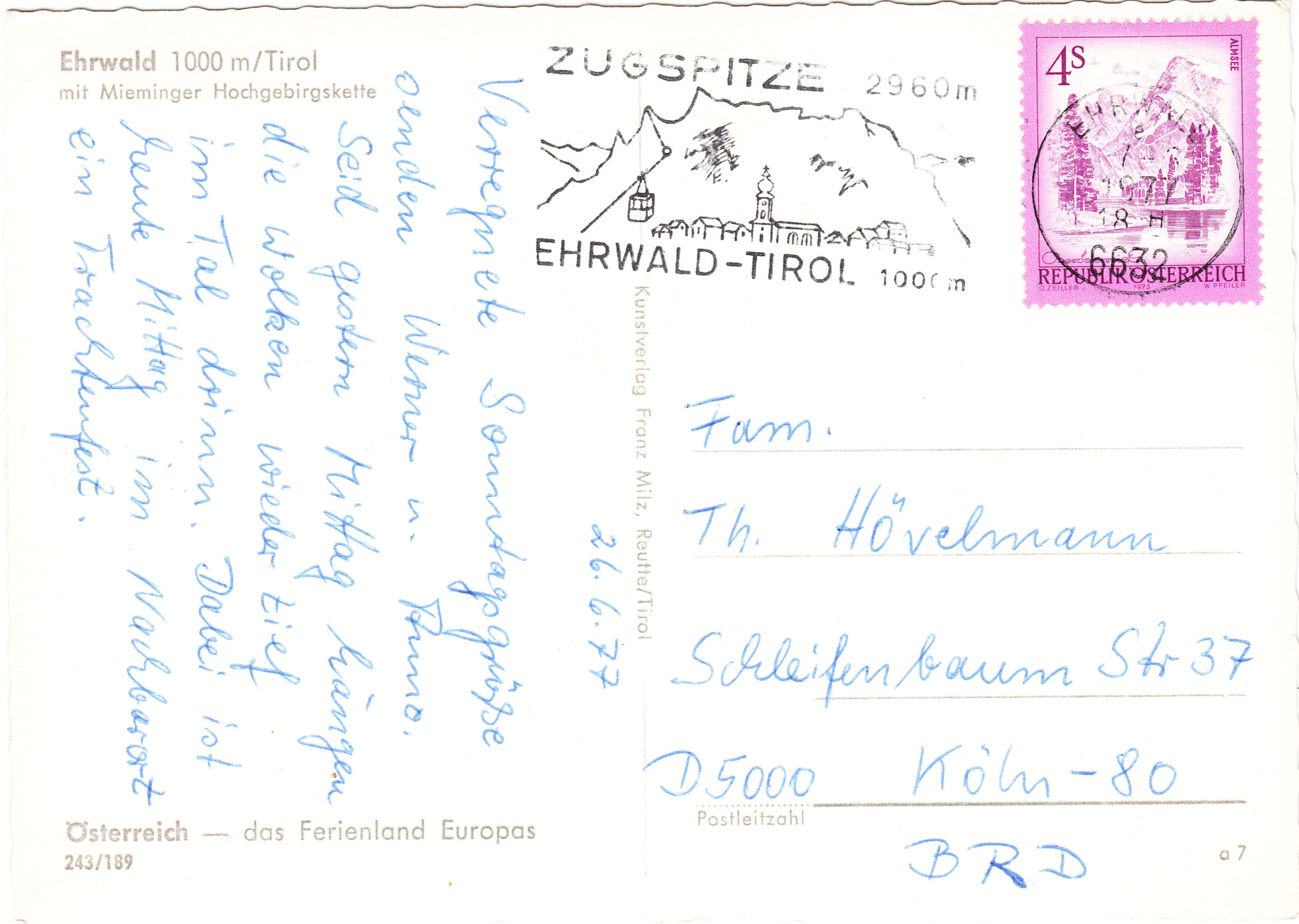 Hier ein weiterer sauberer Abschlag dieses Maschinenstempels vom 27.06.1977: